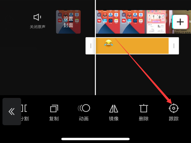 3、添加完成之后,滑动界面下端的菜单栏,找到并点击“跟踪”工具,即可做镜头追踪。
