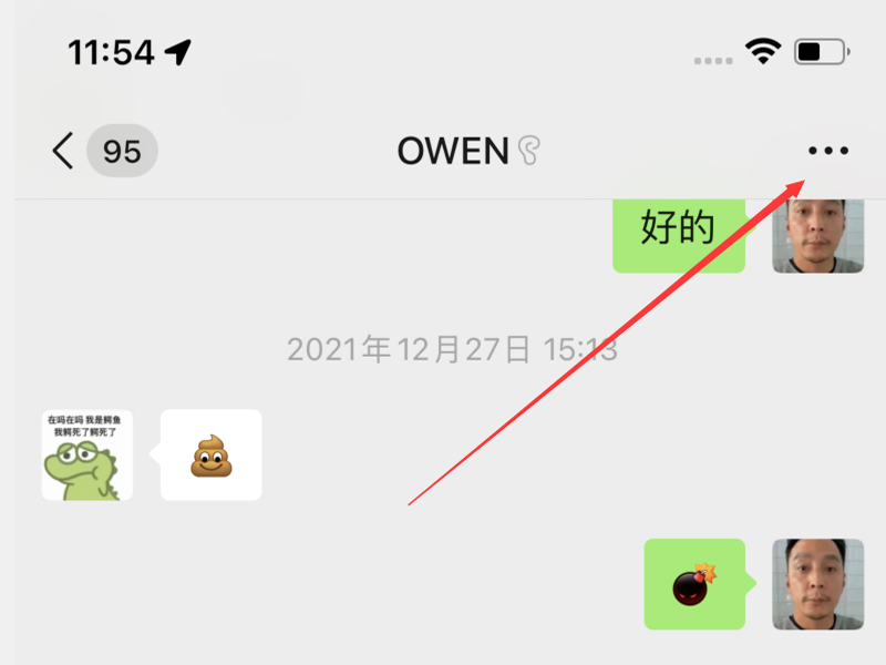 1、打开微信app,进入好友的聊天界面,点击右上角的三小点按钮。