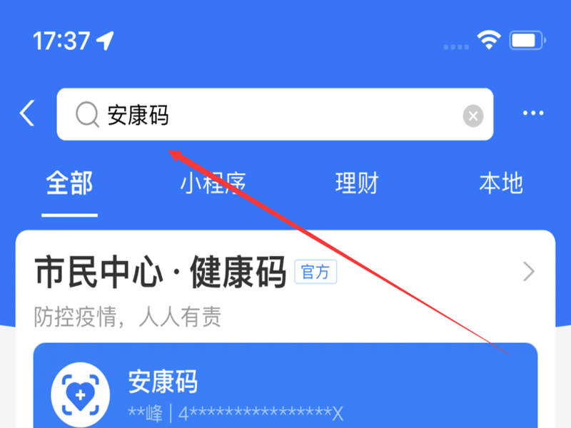 1、打开手机的支付宝app,进入左下角的“首页”,在上方的搜索框中搜索“安康码”。