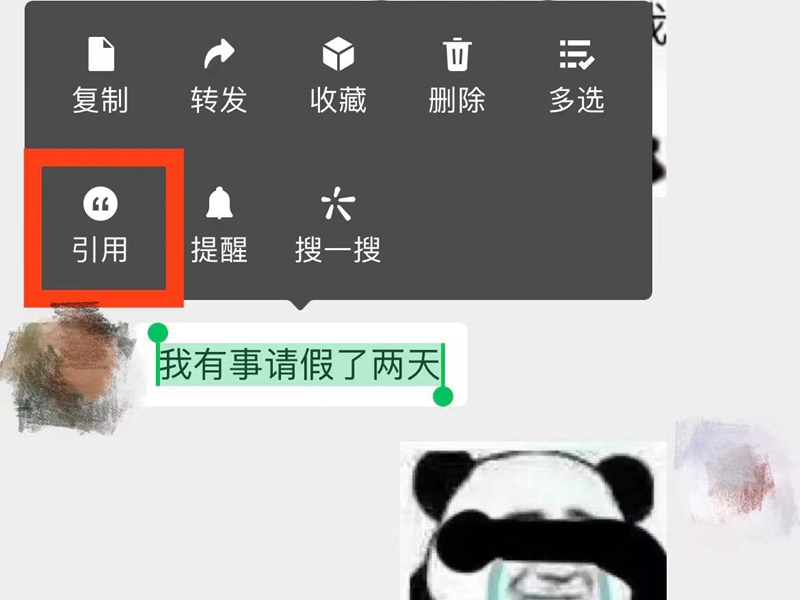 2、在弹出的选项中选择“引用”,同时在对话框内填写内容即可“引用”原话并回复。
