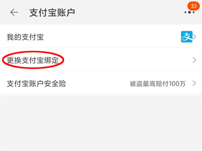 5、点击“更换支付宝账号”,跟着提示更换支付宝账号即可。