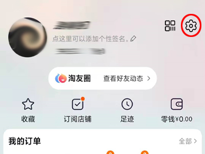 1、打开淘宝,点击右下角“我的淘宝”,再点击右上角的齿轮。