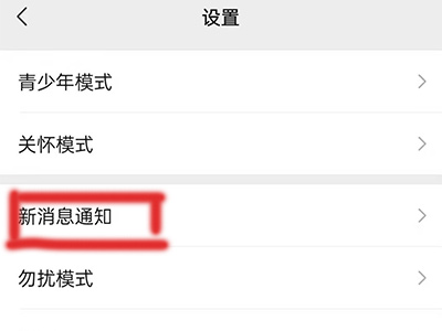 2、在设置页面点击新消息通知并进入页面。