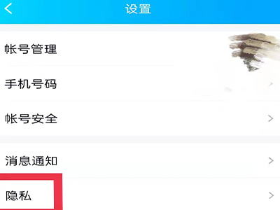 2、在“设置”页面点击隐私。