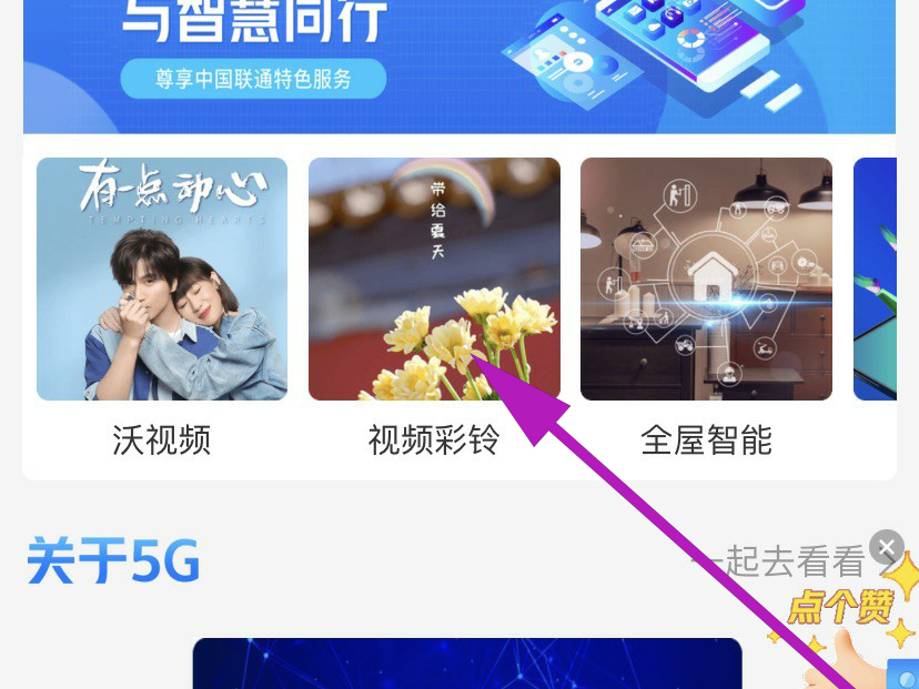 联通用户彩铃的设置步骤如下:1、打开中国联通,然后在下方图标中,选择“服务”。2、找到“5G专区”选项,然后点击进入。3、找到视频彩铃选项,然后点击进入。4、寻找自己喜欢的彩铃,然后点击进入。5、点击右下角的彩铃图标,即可将该动态视频设置为彩铃。