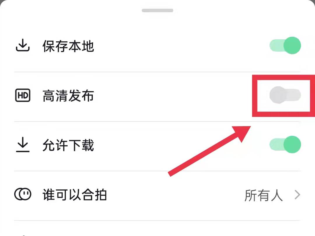 5、在发布设置页面中把高清设置后的按钮打开即可发布高清视频。