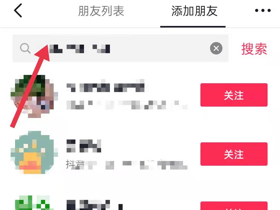 3、在添加朋友页面上方的搜索框中搜索好友的昵称或手机号,点击关注即可。