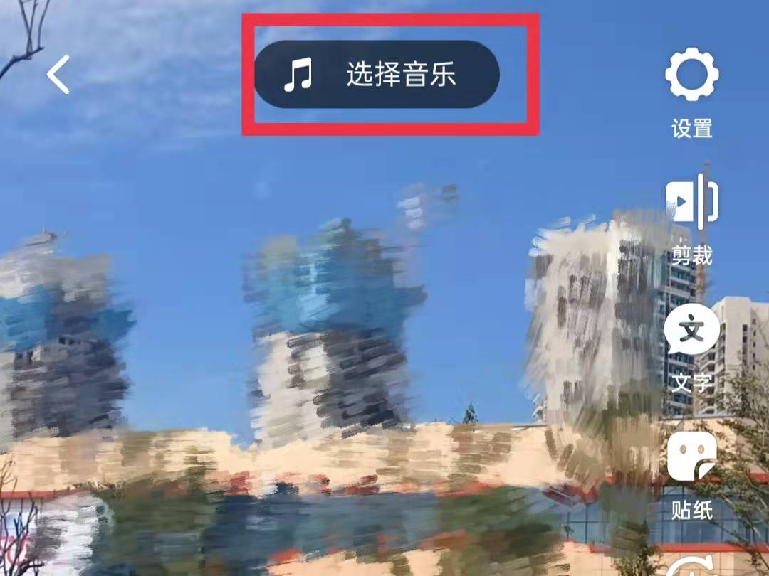 3、拍摄完成后进入剪辑画面,点击“选择音乐”,进入选择音乐页面。