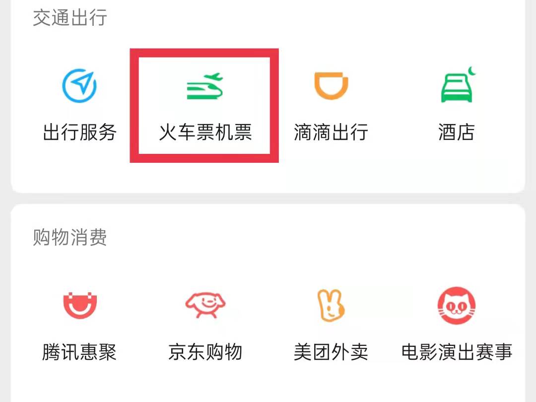 3、在支付页面中点击“火车票机票 ”,进入火车票机票页面。