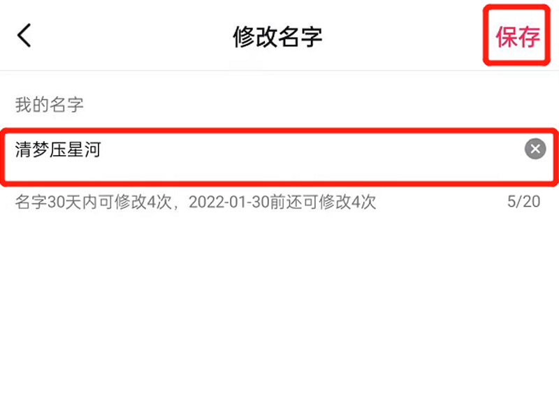 3、点击“名字”,进行修改名字,修改后点击“保存”即可。