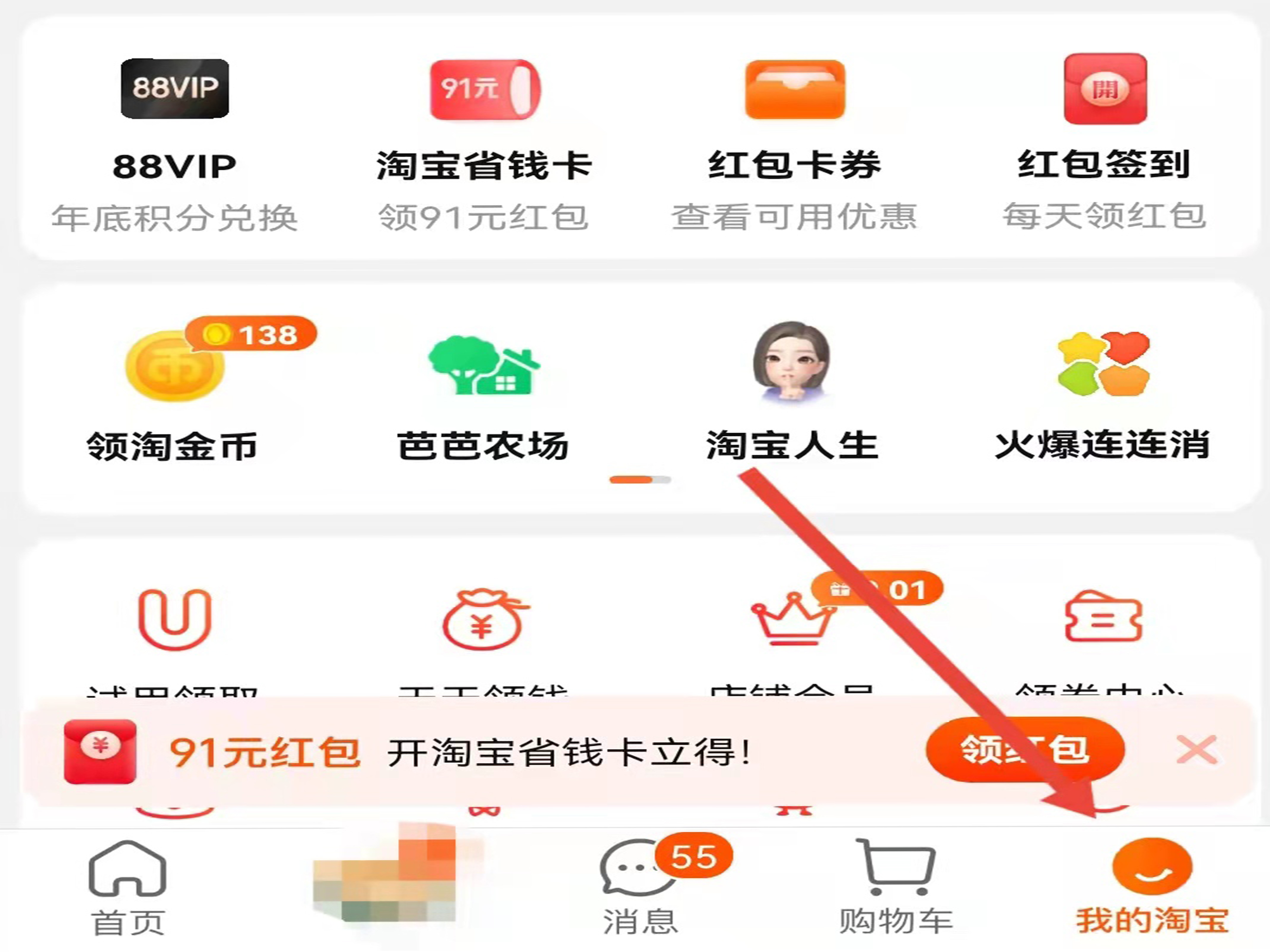 1、打开手机淘宝app,切换到“我的淘宝”页面。