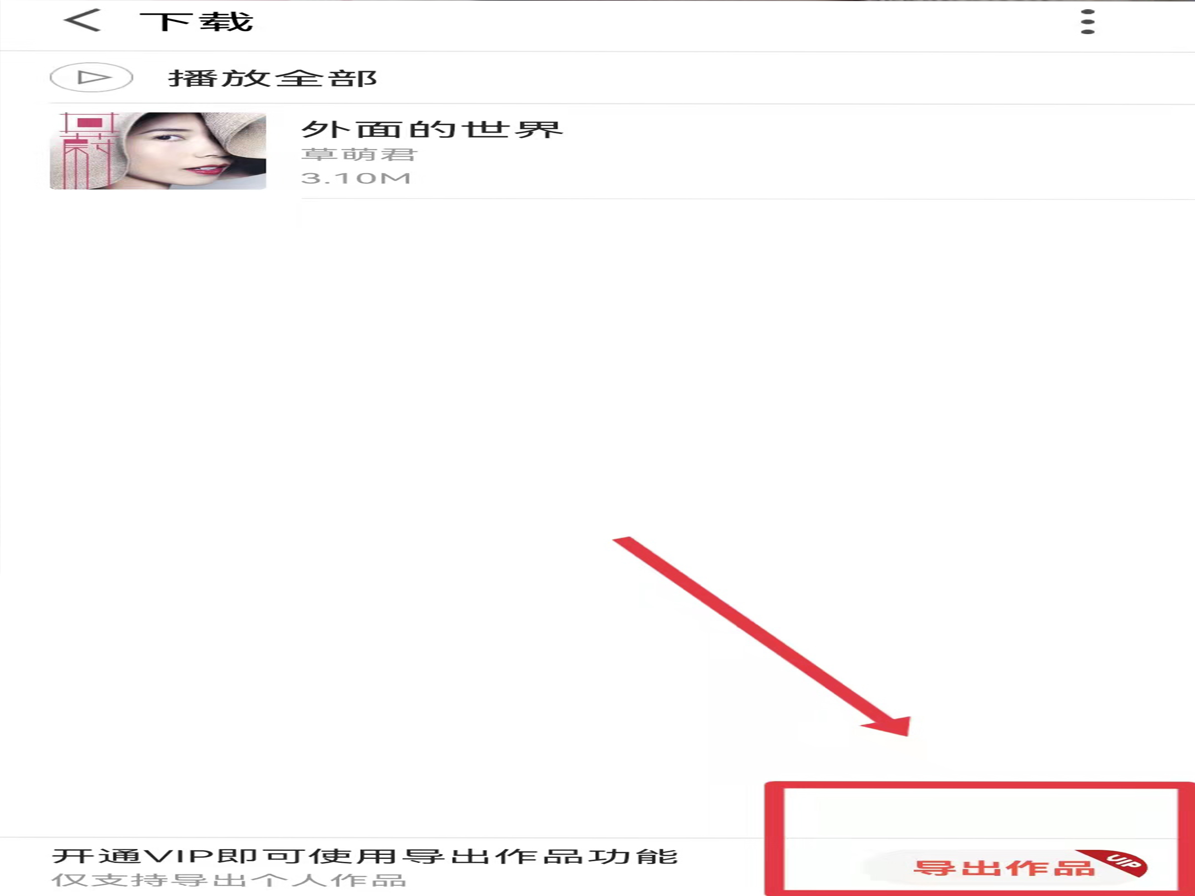 4、在弹出的选项中选择“音频”,点击右下角的“导出作品”即可。注意 开通vip才可使用导出音频的功能。