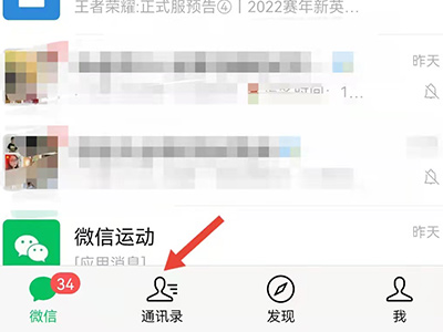 1、打开微信app,点击底部信息栏中的“通讯录”,进入页面。