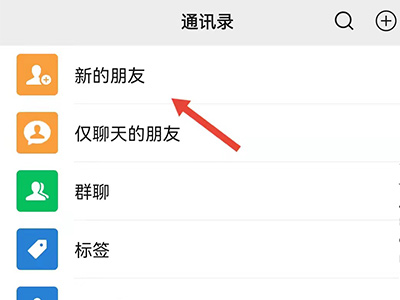 2、进入页面后点击“新的朋友”选项,进入界面查看好友申请。