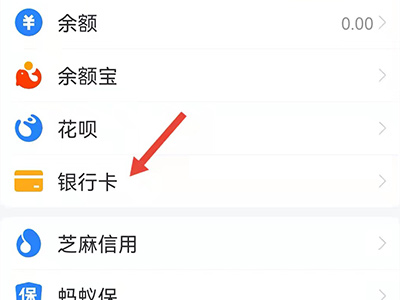 1、打开支付宝app,在我的页面点击“银行卡”。