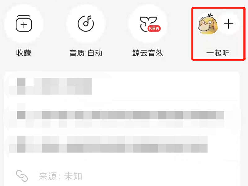 2、点击三个点按钮后,点击右上方的一起听进入一起听邀请界面。