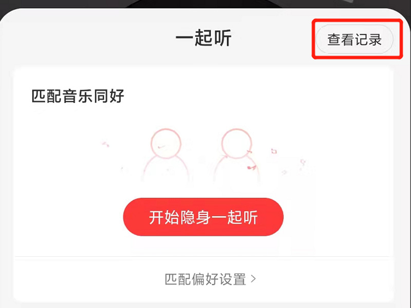 3、进入一起听邀请界面后,点击右上方的查看记录即可查看一起听的记录。
