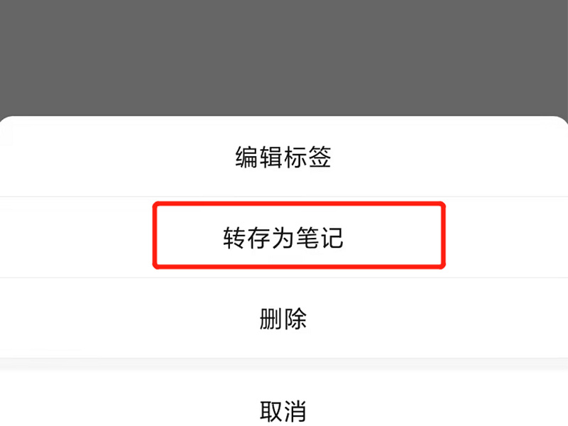 4、点击进入收藏界面后,点击收藏的语音进入详情,点击右上角的按钮,然后再点击转存为笔记。