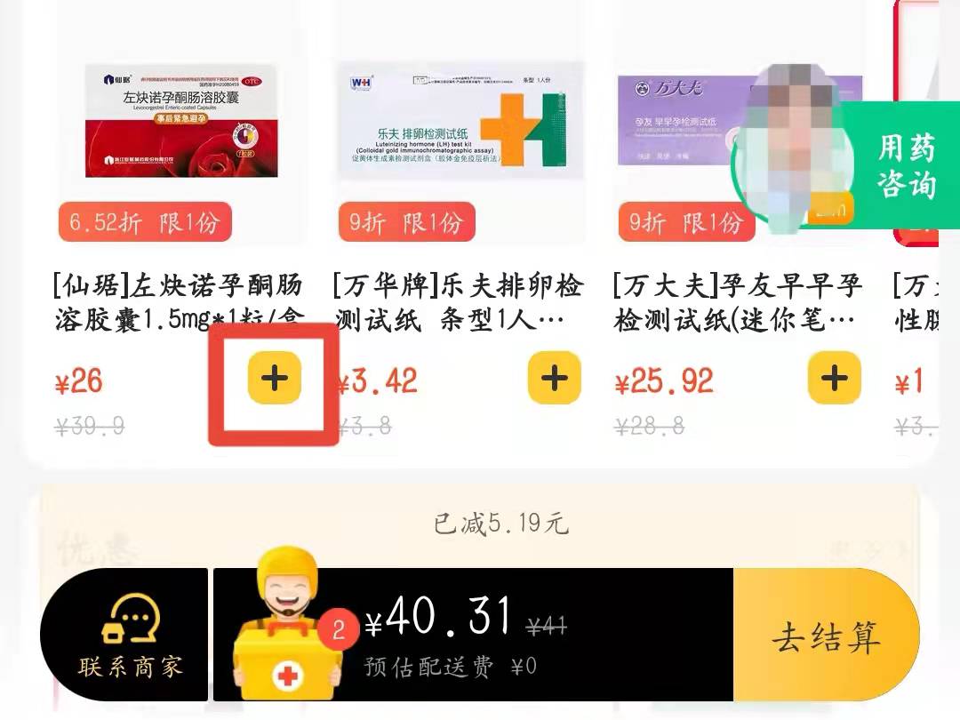 2、点击店铺,进入店铺购买界面,再将药品添加到购物车。