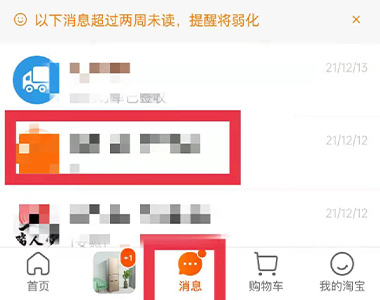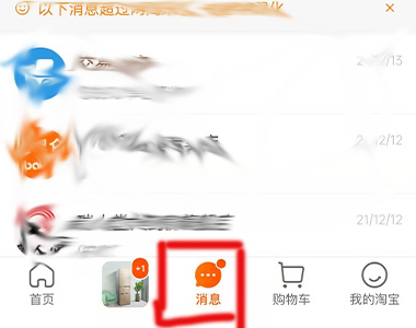 1、打开淘宝,切换至消息页面。