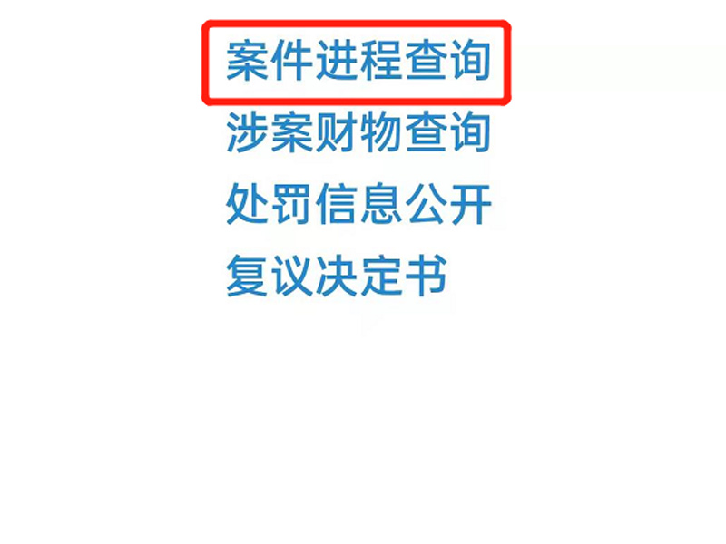 5、点击“案件进程查询”,输入案件编号、身份证号、手机号等点击“查询”即可进行查询。