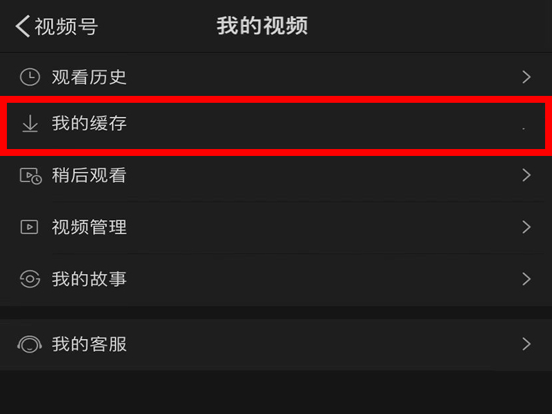 3、在“我的视频”界面中,点击“我的缓存”。