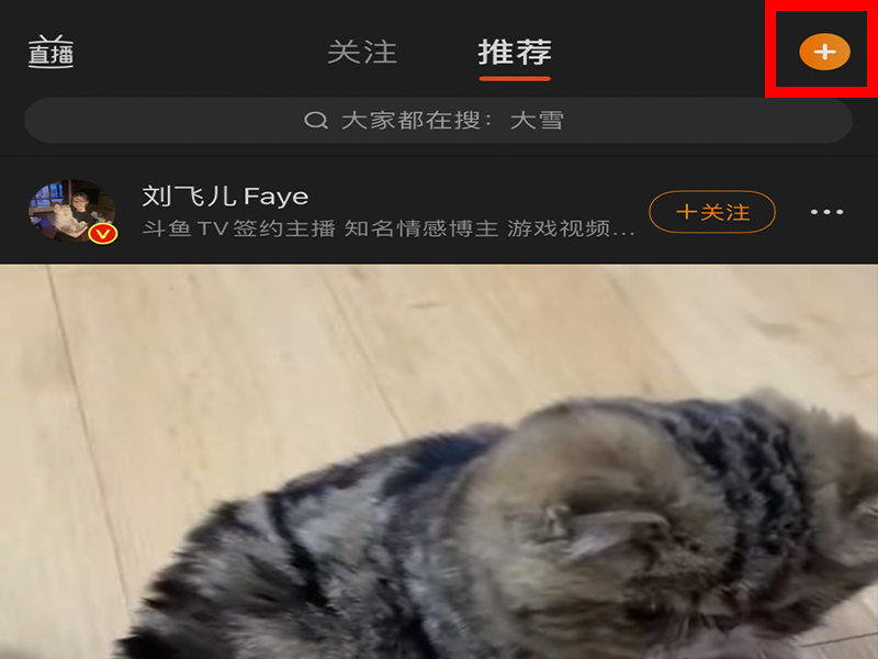 2、进入“推荐”界面后,点击右上角的“+”号,再点击“视频管理”。