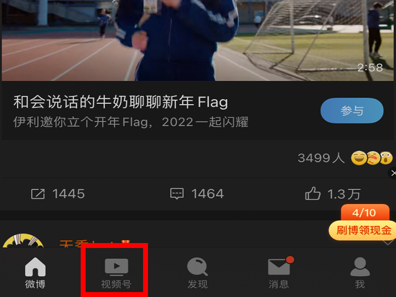 1、打开微博app,点击界面下方的视频号。