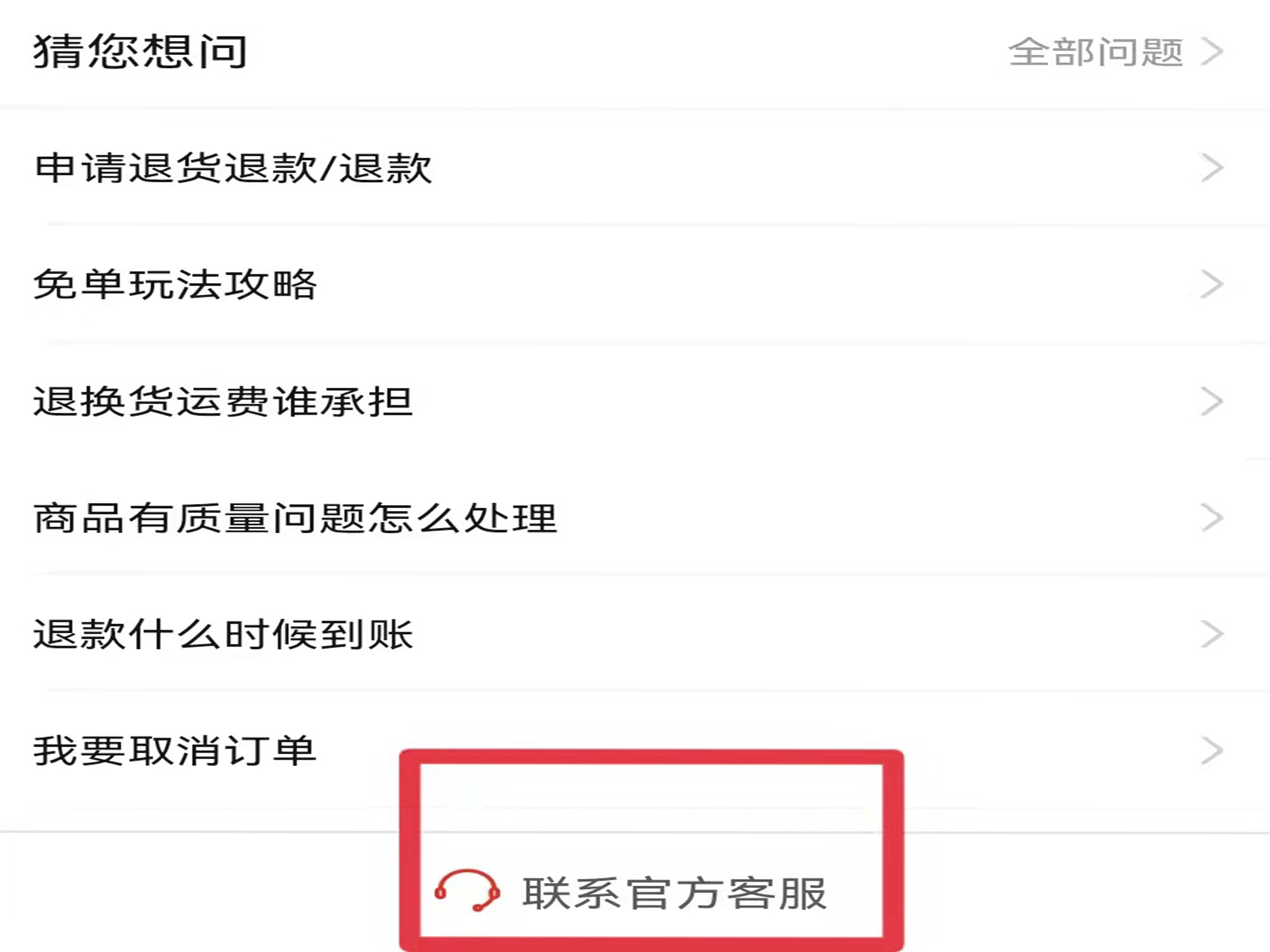 2、点击“官方客服”图标,点击底部的“联系官方客服”。