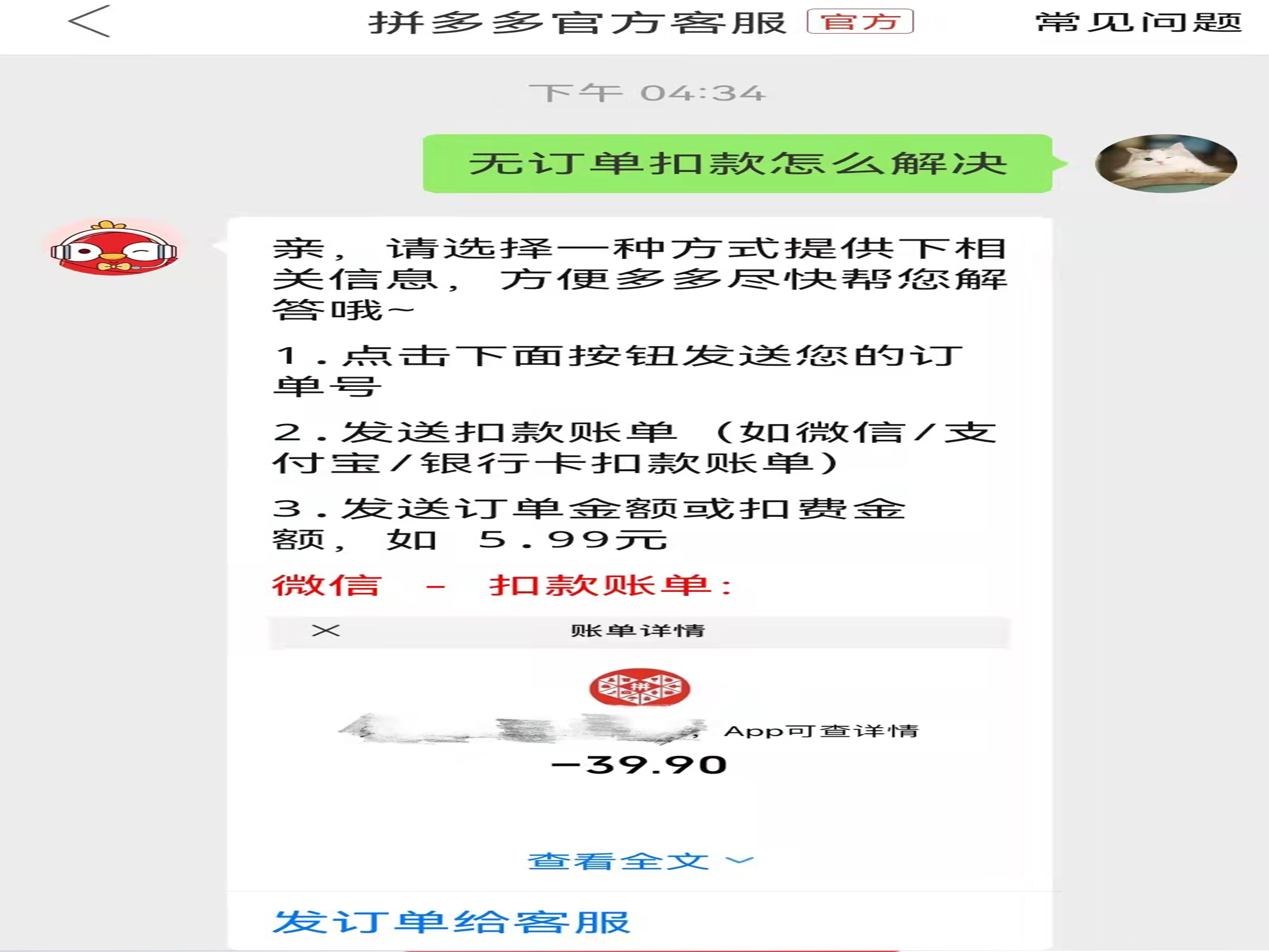 4、客服会推送发送“扣款账单”或“扣费金额”等提示信息。