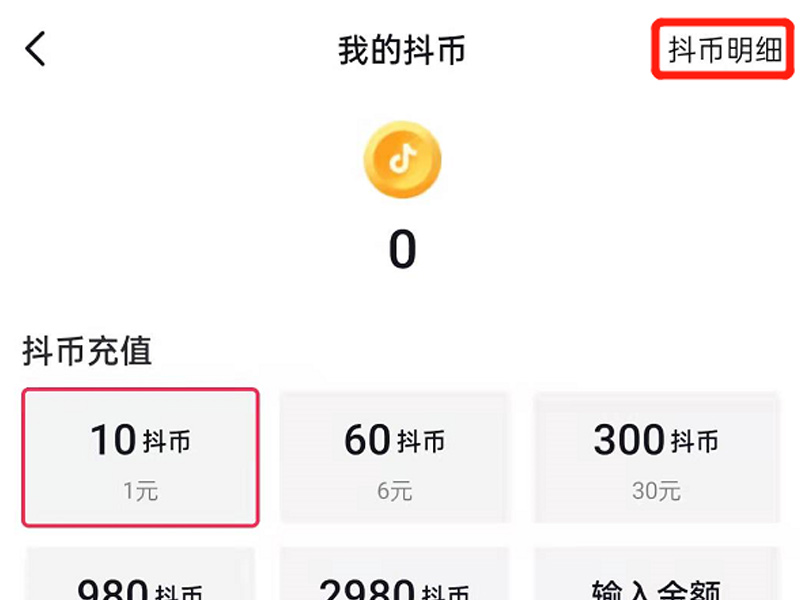 4、点击右上角“抖币明细”即可查看抖币明细。