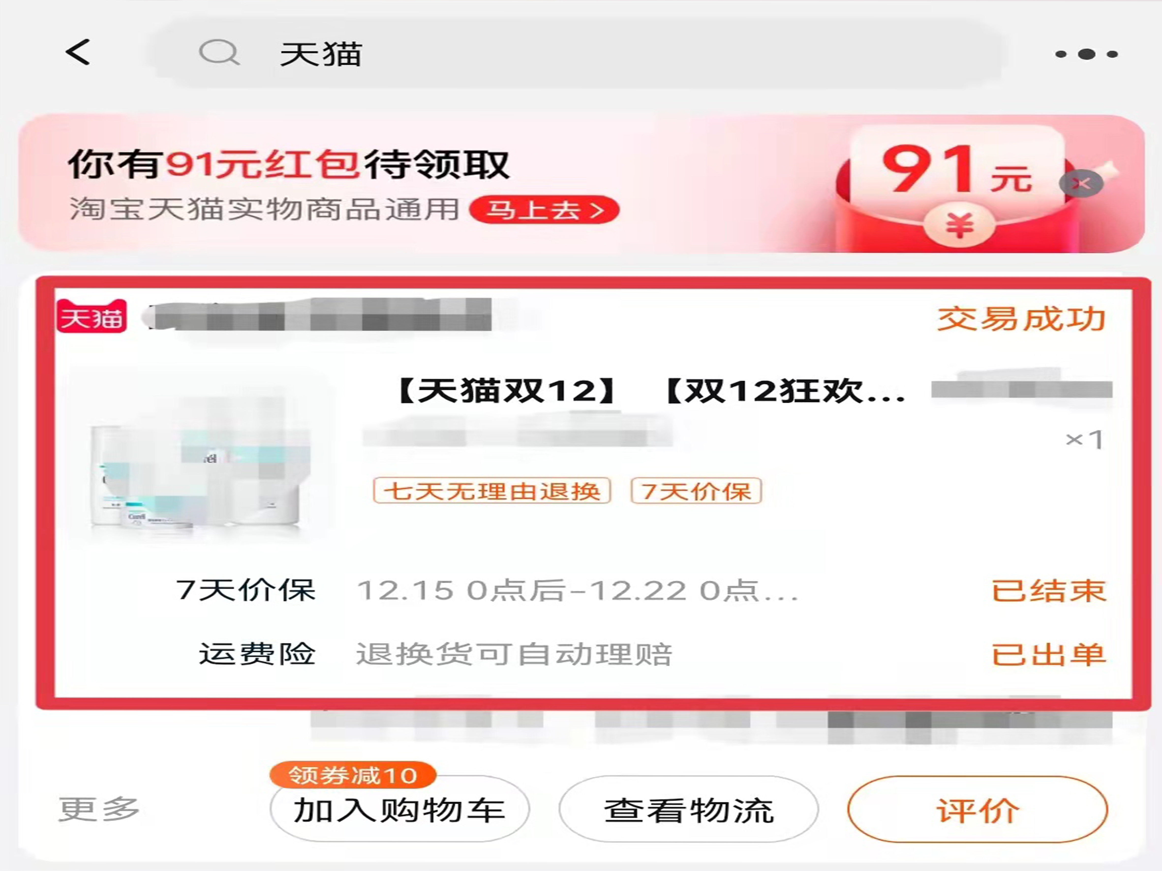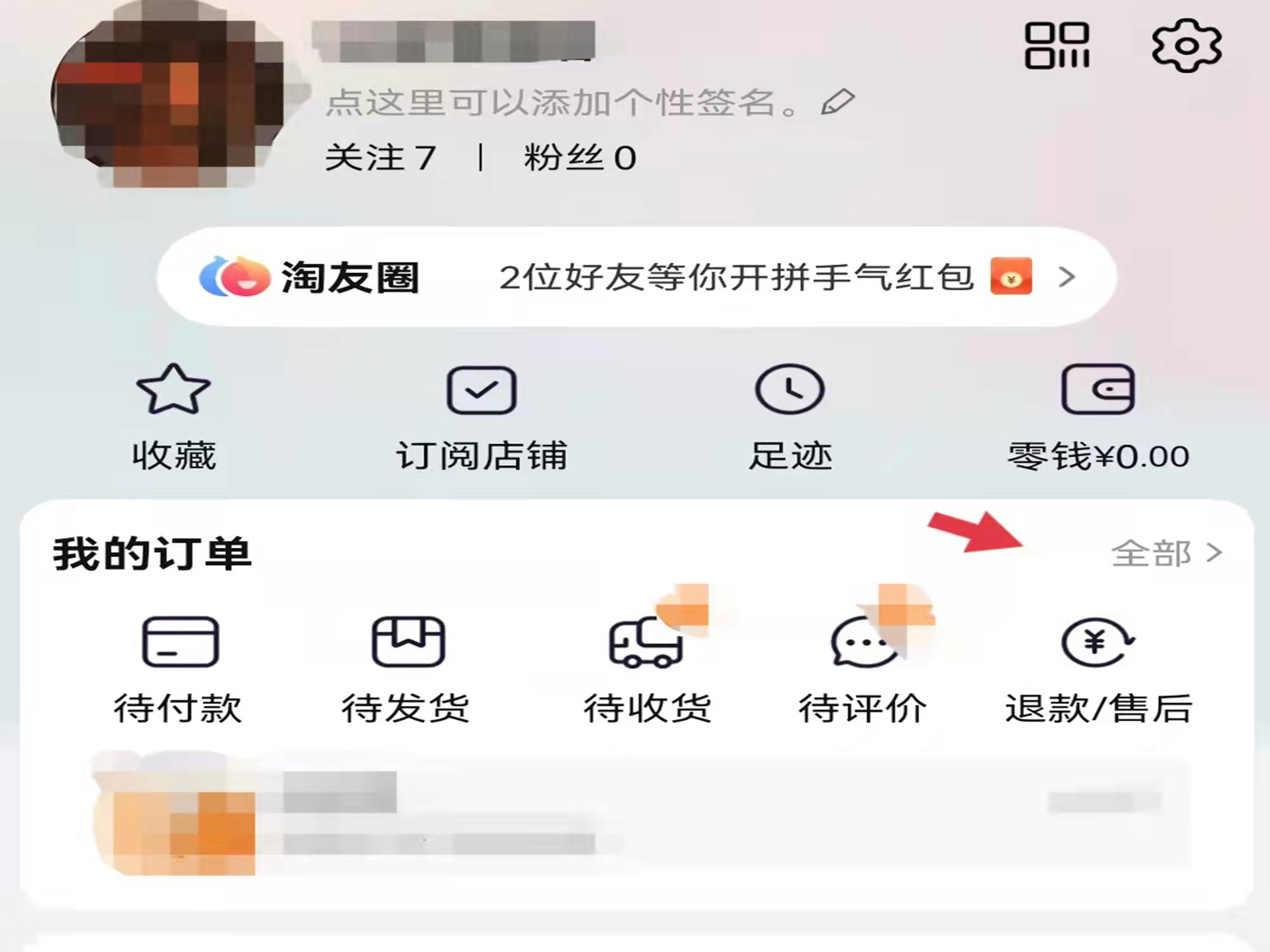 2、点击“我的订单”右侧的“全部”,选择天猫商品订单。