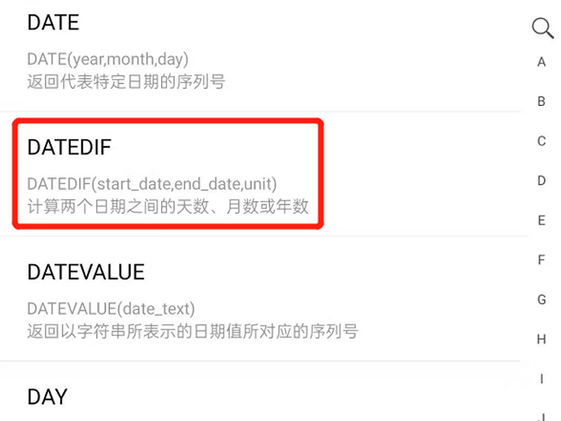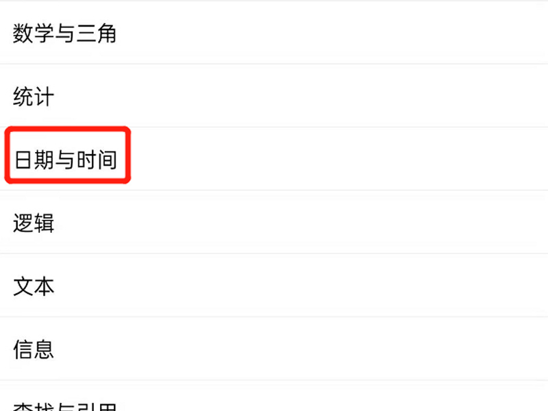 4、点击“日期与时间”,找到并点击“DATEDIF”。