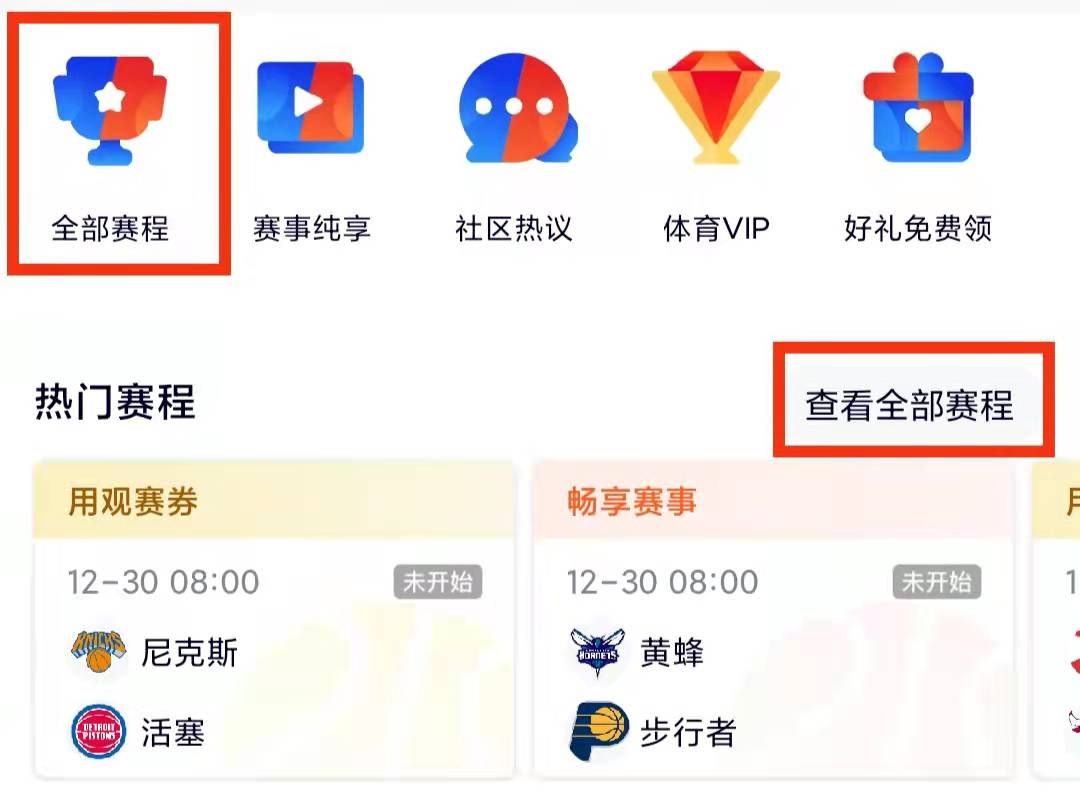 观看nba直播的具体操作步骤如下:1、打开腾讯视频,在首页上方的节目菜单栏中找到“NBA”点击“NBA”,进入NBA专属页面。2、点击“全部赛程”或者“查看全部赛程”,进入赛程页面。3、如果当前有NBA直播,直接点击赛事即可观看直播,若当前没有直播赛事,可以先点击“预约”,到时间再来观看。