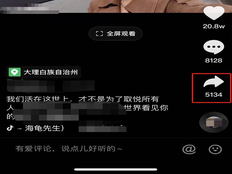 1、打开抖音app,选择需要复制文案的视频,点击右侧箭头即可弹出分享框。