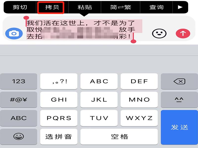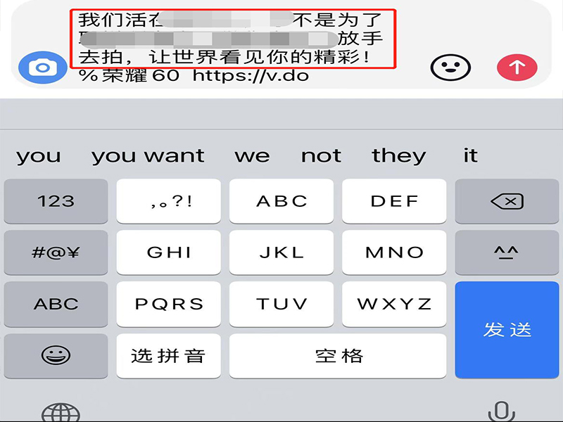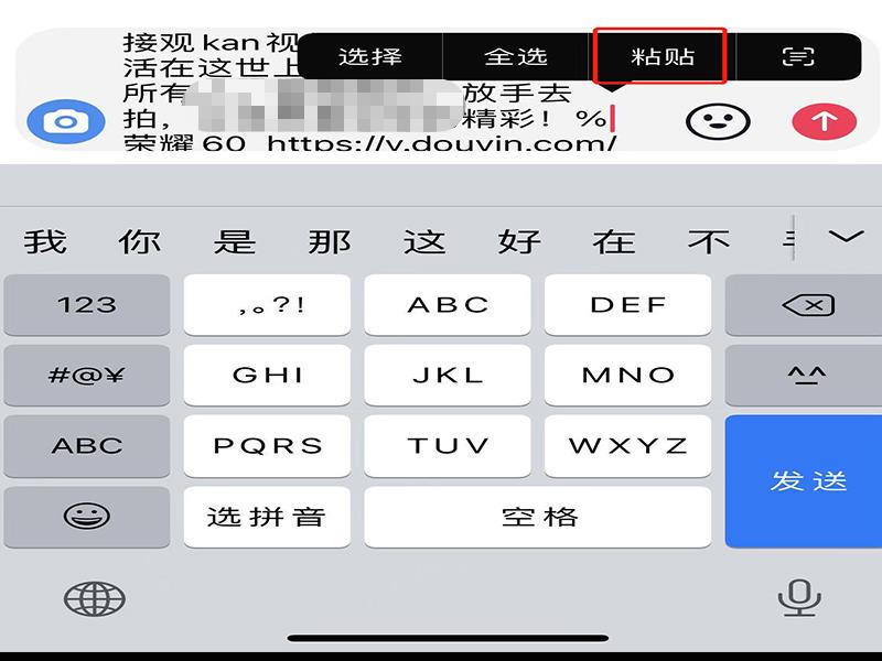 3、在输入框中,选择“粘贴”即把链接粘贴至输入框中。