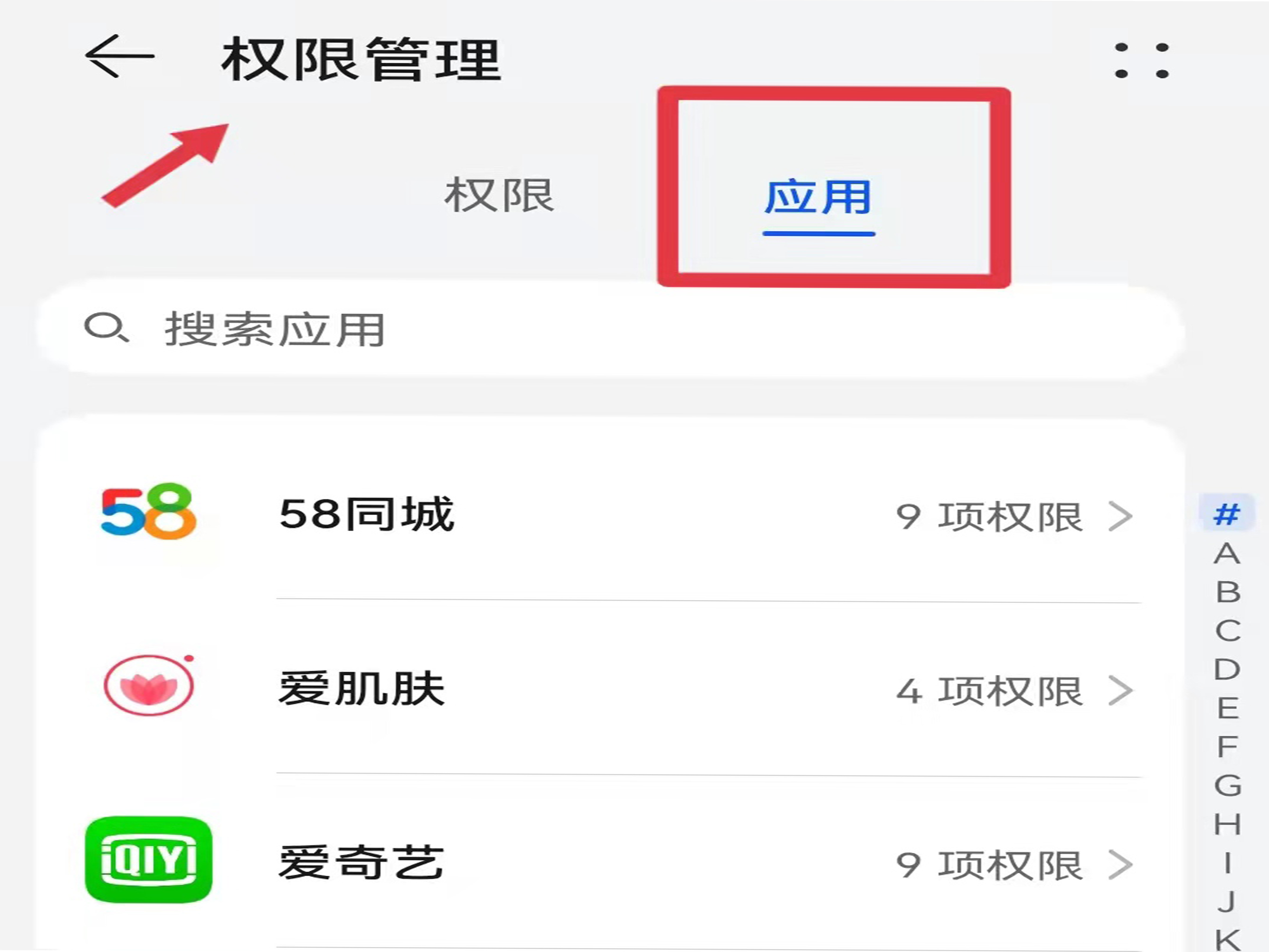 3、在权限管理页面的搜索框输入“滴滴出行”。