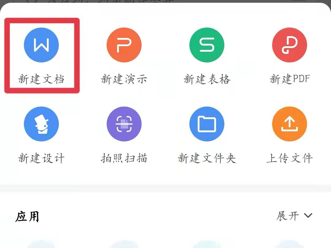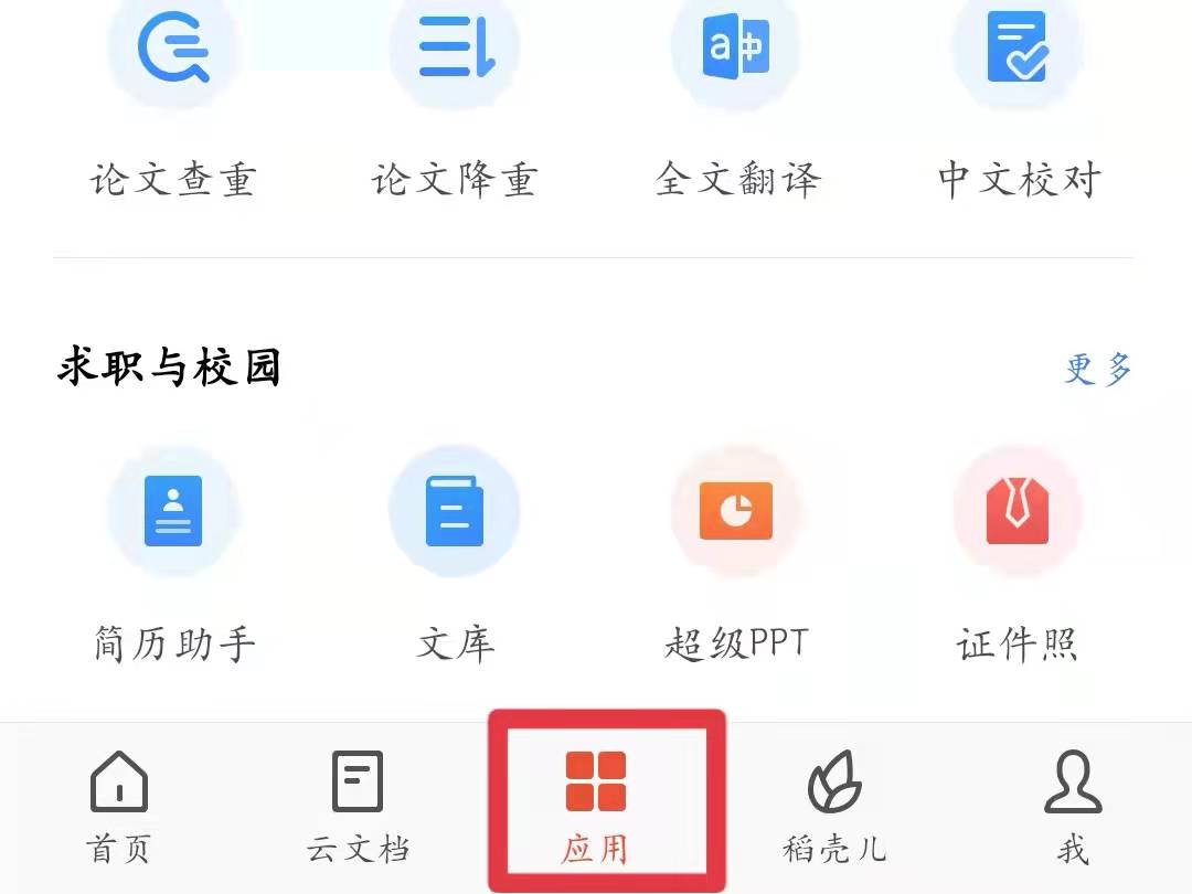 1、打开wps软件,点击主界面下方的“应用”,进入应用功能界面。