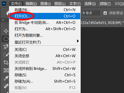 1、打开PS,点击文件,选择打开,打开需要去除水印的图片。