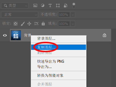 2、选中背景图层,右击,选择“复制图层”,不建议直接在原图上面进行操作。