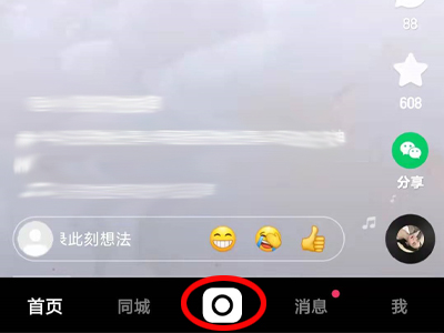 1、打开快手,点击下方中间的照相机。