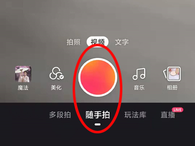 2、切换到随手拍模块,拍摄一段视频。