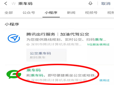 2、在搜索框内输入“乘车码”,点击“搜一搜乘车码”。