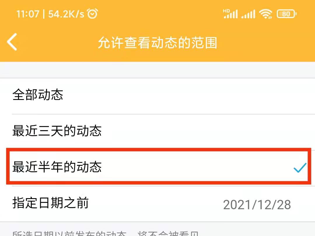 将qq空间设置为半年可见的具体操作步骤如下:1、打开QQ,点击首页左上角的个人小头像。2、在新弹出的页面点击“设置”,切换到设置页面。3、点击“隐私”,再点击“权限设置”,进入“好友动态权限设置”。4、点击“隐私与安全”,在“允许查看动态的范围”中勾选“最近半年的动态”即可设置qq空间半年可见。
