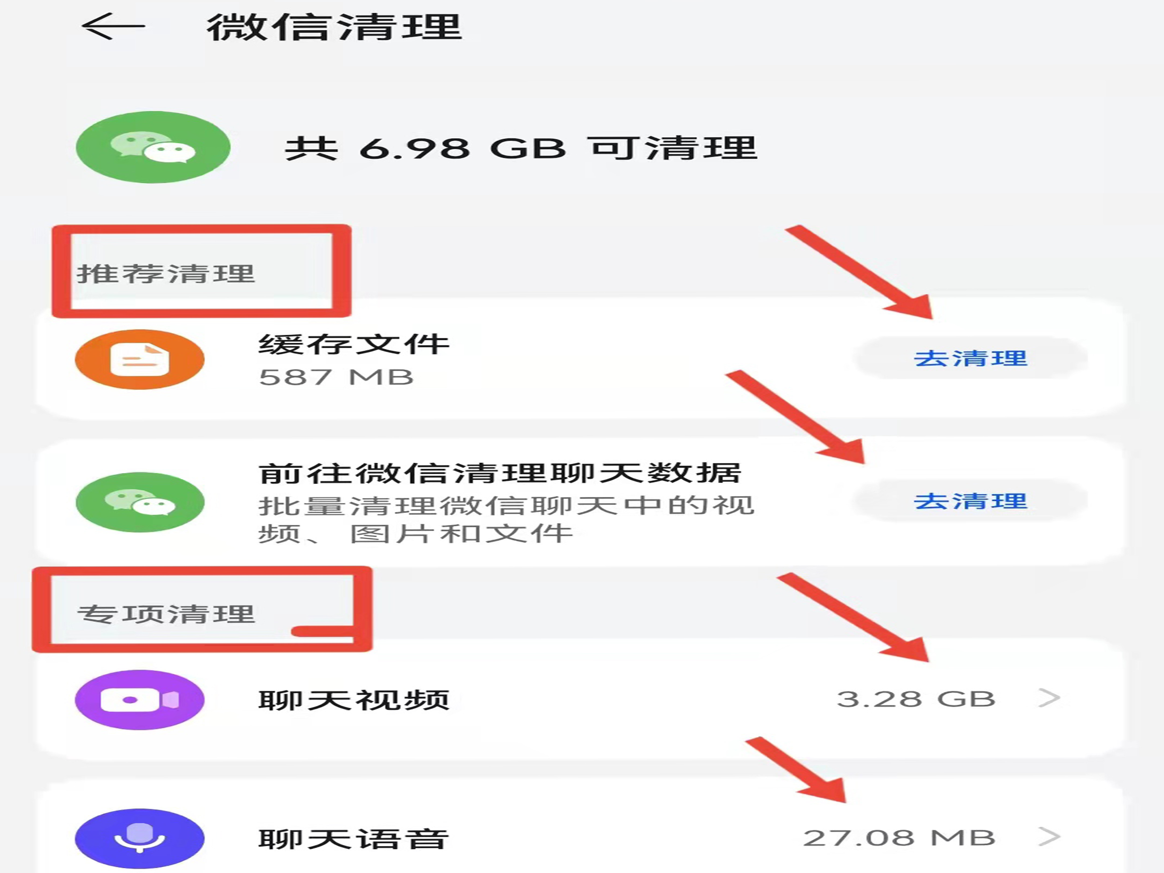 清理微信内存的操作方法如下:1、打开手机自带的设置软件,进入主页面。2、点击“存储”,点击“清理加速”。3、点击“微信清理”右侧的“去清理”按钮。4、对“推荐清理”和“专项清理”的项目,同时进行清理即可。