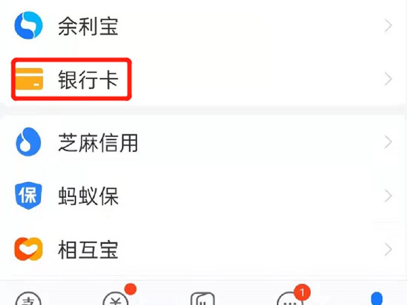 2、点击“银行卡”。