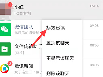 3、长按对话框,待弹出信息框后点击“标为已读”,这样微信便可显示已读。