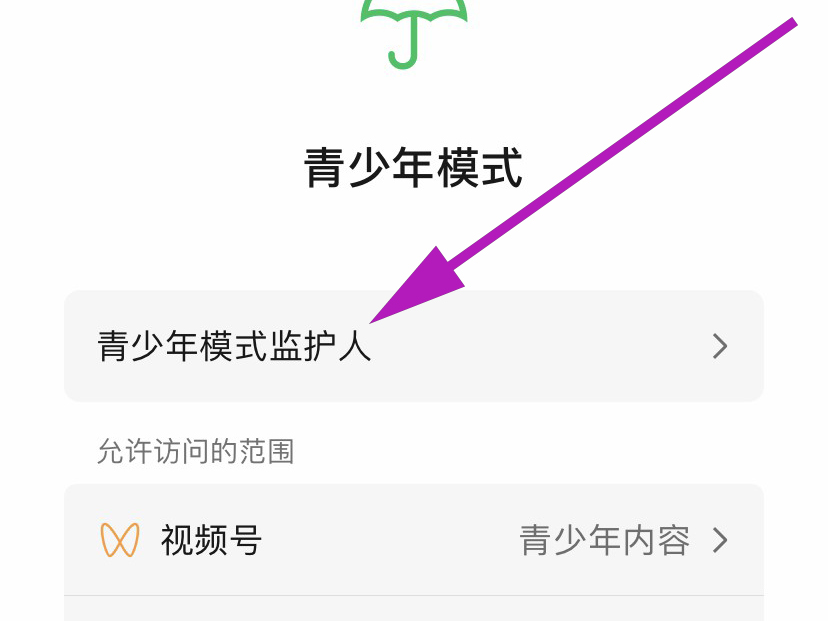 2、在青少年模式页面中,找到“青少年模式监护人”的选项,然后点击进入。