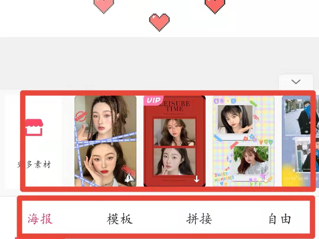 3、选择界面下方喜欢的素材,最后点击右上角的“√”即可完成拼图。