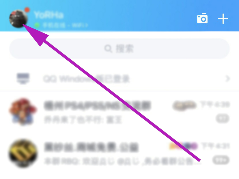 1、打开qq,在主页的左上方点击自己的头像,打开自己的个人主页。